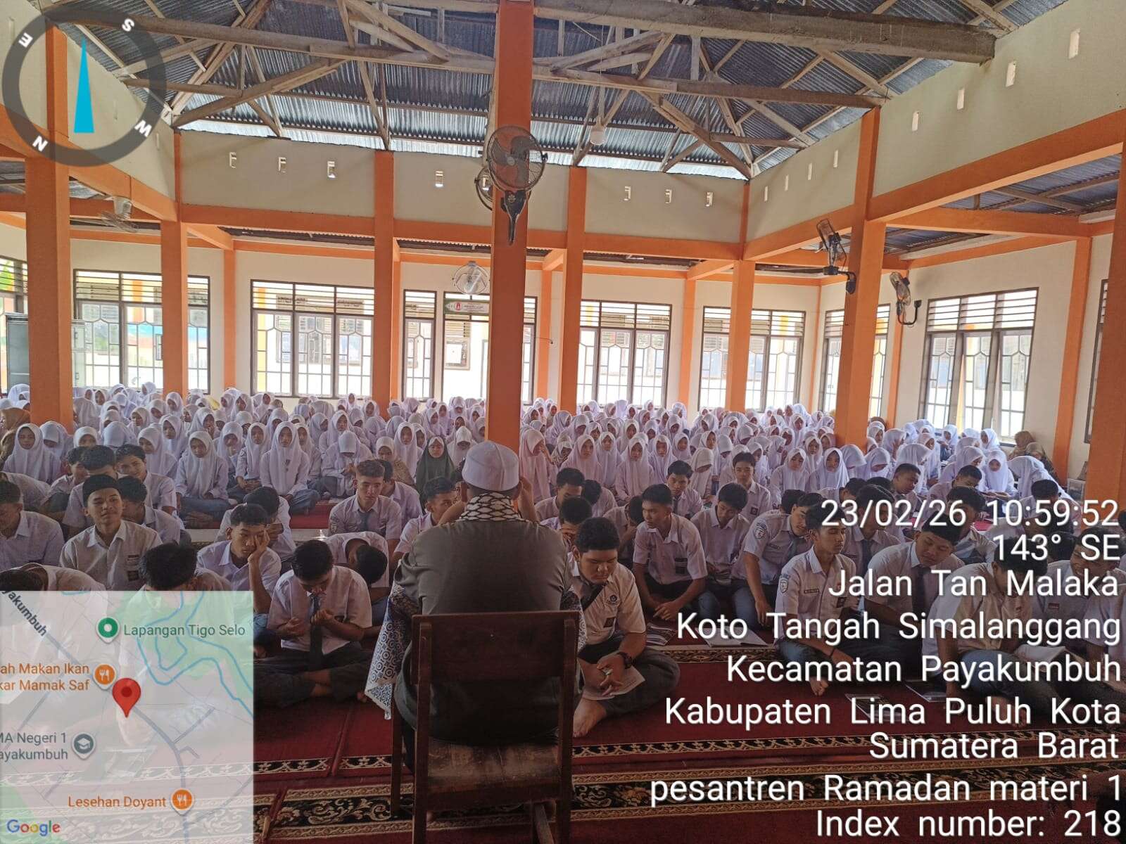 Pelaksanaan kegiatan Pesantren Ramadhan hari ke-1 di SMAN 1 Kec. Payakumbuh berlangsung dengan penuh khidmat.