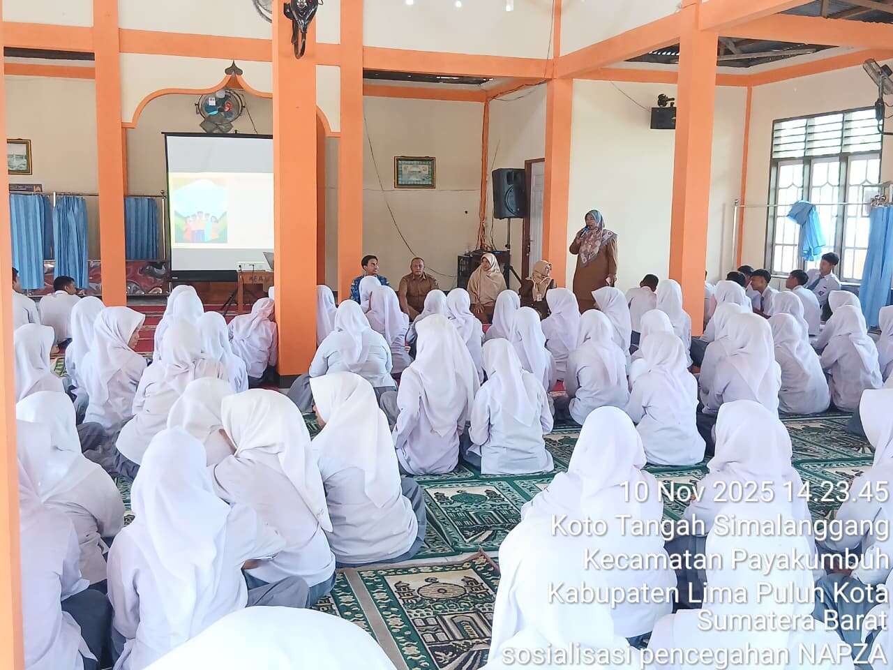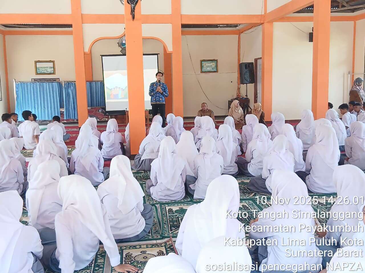 Pada hari Senin, 10 November 2025, SMAN 1 Kecamatan Payakumbuh melaksanakan kegiatan Sosialisasi Pencegahan Penggunaan NAPZA (Narkotika, Psikotropika, dan Zat Adiktif lainnya). Kegiatan ini berlangsung di Mushala SMAN 1 Kecamatan Payakumbuh dan diikuti oleh peserta didik dan guru.