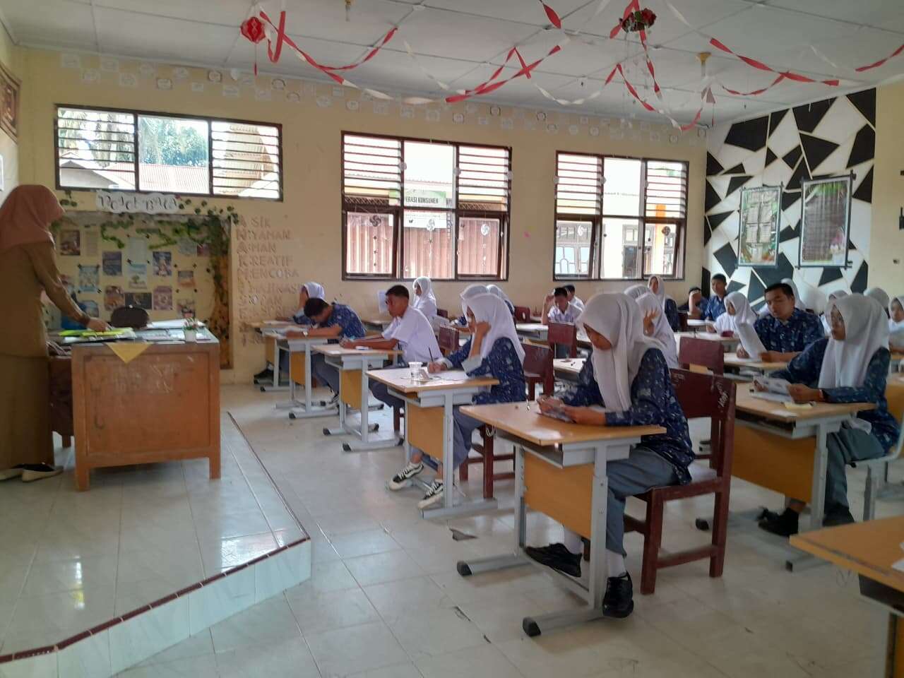 Selama ujian berlangsung, seluruh kegiatan belajar mengajar difokuskan pada pelaksanaan ujian dengan penjadwalan yang tertib, nyaman, dan kondusif. Pihak sekolah juga menjalankan pengawasan dan monitoring agar kegiatan berlangsung dengan disiplin dan penuh integritas.