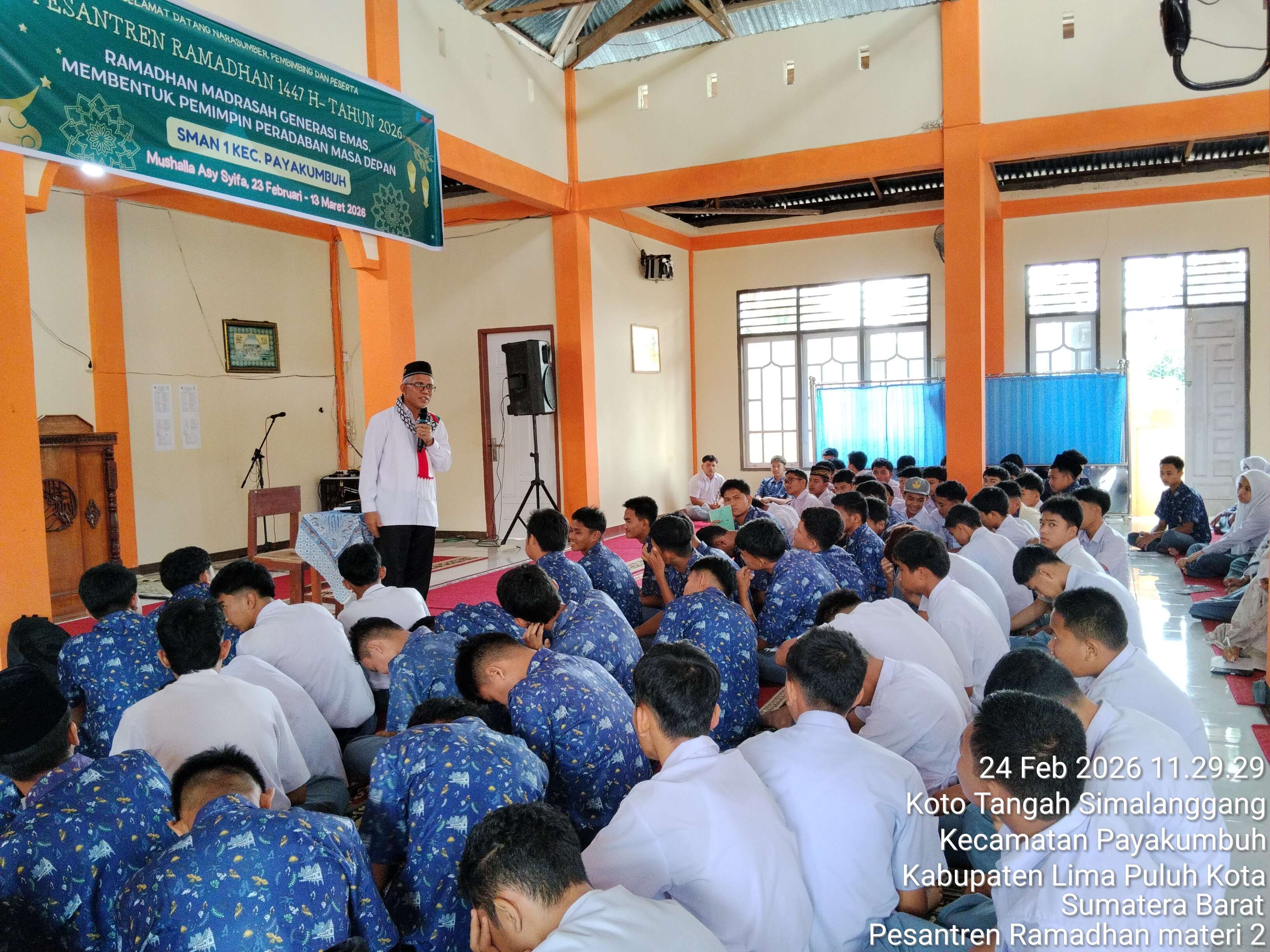 Pesantren Ramadhan hari ke-2 di SMAN 1 Kec. Payakumbuh kembali berlangsung dengan penuh antusias dan kekhusyukan. Kajian kali ini menghadirkan narasumber, Ust. Safrijon, M.A, yang menyampaikan materi bertema Fiqih Ibadah Praktis: Urgensi Puasa di Era Modern.